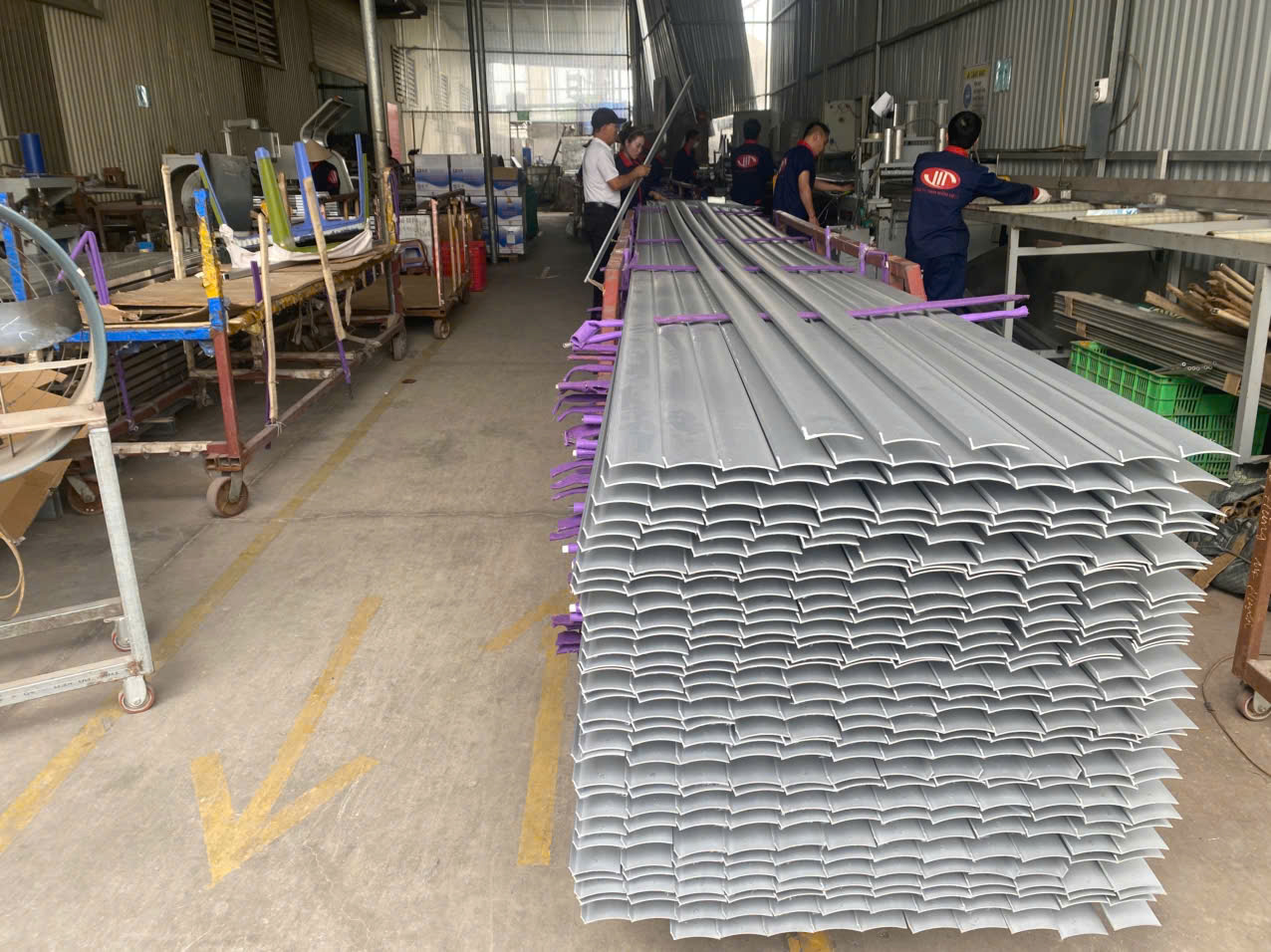 The factory is equipped with modern machinery such as CNC systems, anodizing lines, powder coating, and wood grain film coating lines, ensuring high precision, uniformity, and compliance with strict technical standards both domestically and internationally.
