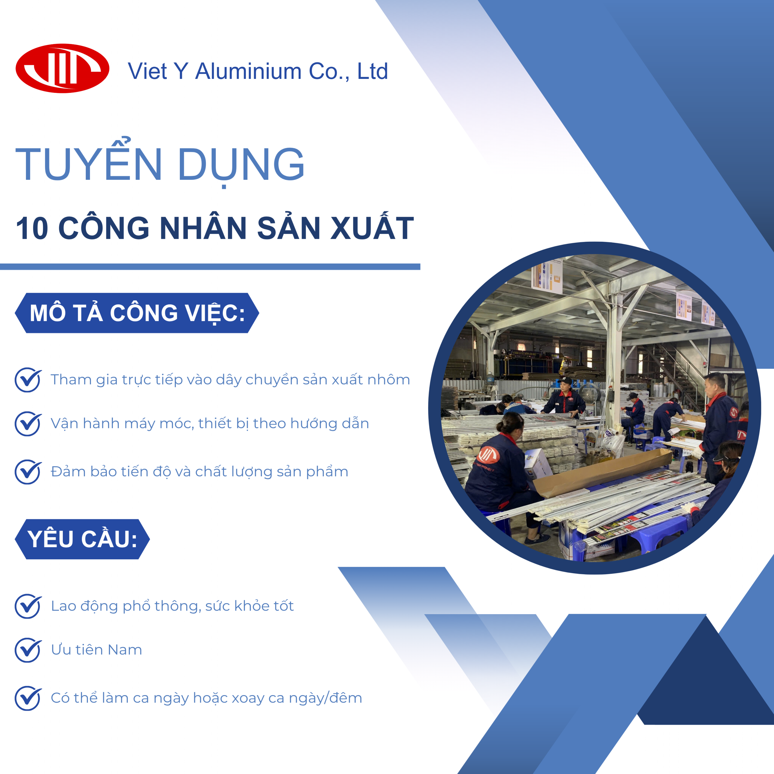 Trong bối cảnh ngành nhôm công nghiệp và cơ khí tại Hà Nội phát triển mạnh mẽ, Công ty TNHH Nhôm Việt Ý tiếp tục mở rộng quy mô nhà máy và cần tuyển dụng nhiều vị trí nhân sự nhằm đáp ứng nhu cầu sản xuất.