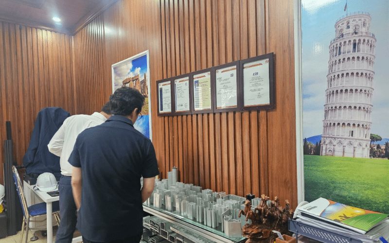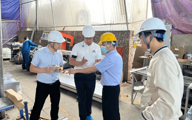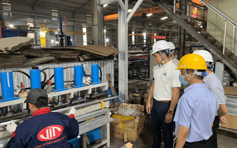 Cũng trong buổi gặp mặt, các thành viên trong Đoàn khách hàng đã được đi khảo sát nhà máy sản xuất, quy trình hoạt động, các sản phẩm thực tế mà Nhôm Việt Ý đang sản xuất - chế tạo cũng như các máy móc, thiết bị phục vụ công tác sản xuất.